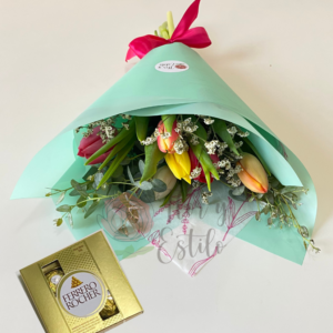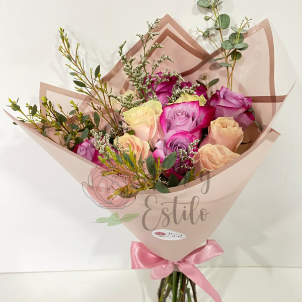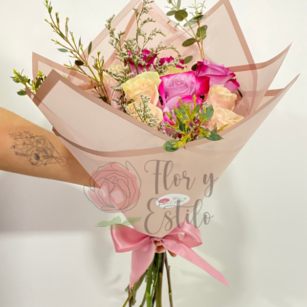 Un ramo maravilloso con flores frescas del día, compuesto por un mix de colores, ideal para regalo. Crisantemos, hypericum, rosas y alstroemerias importadas de Ecuador