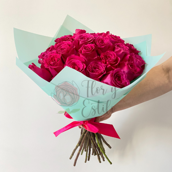 Ramo Aria. 25 rosas Fucsias en ramo.