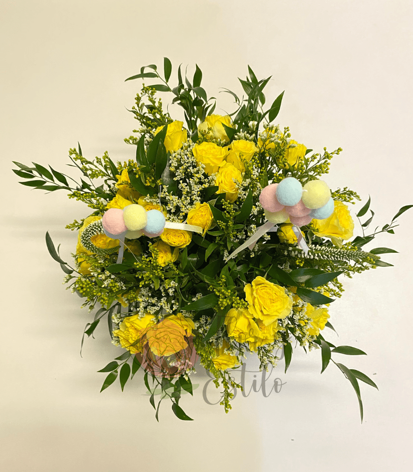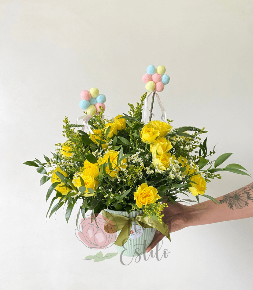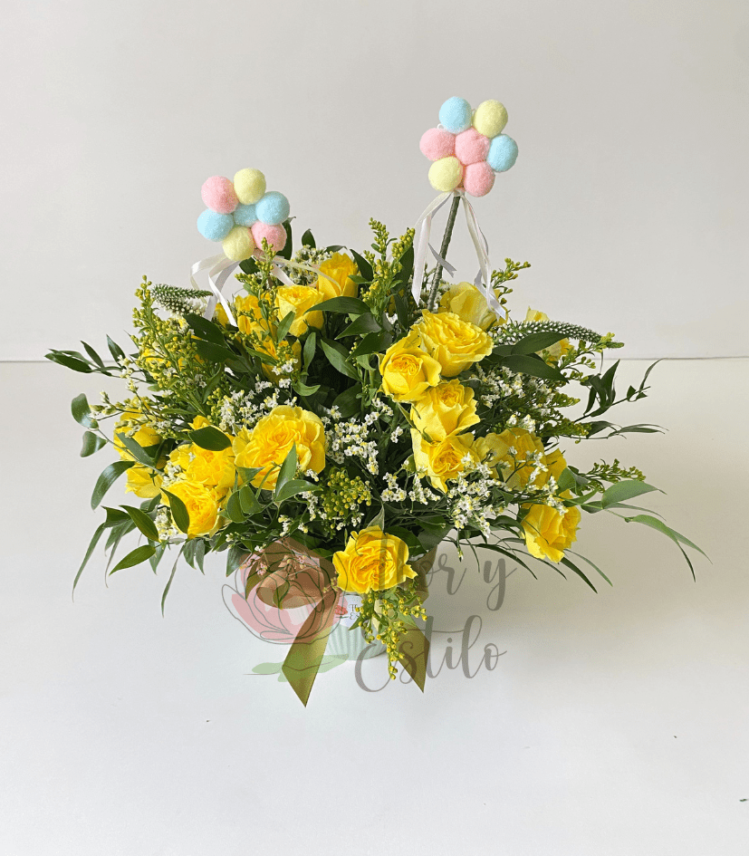 Canasto Agustina. Mini clavel y Alstroemerias en canasto S.