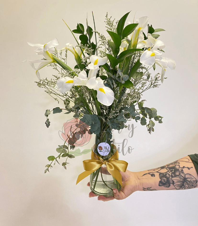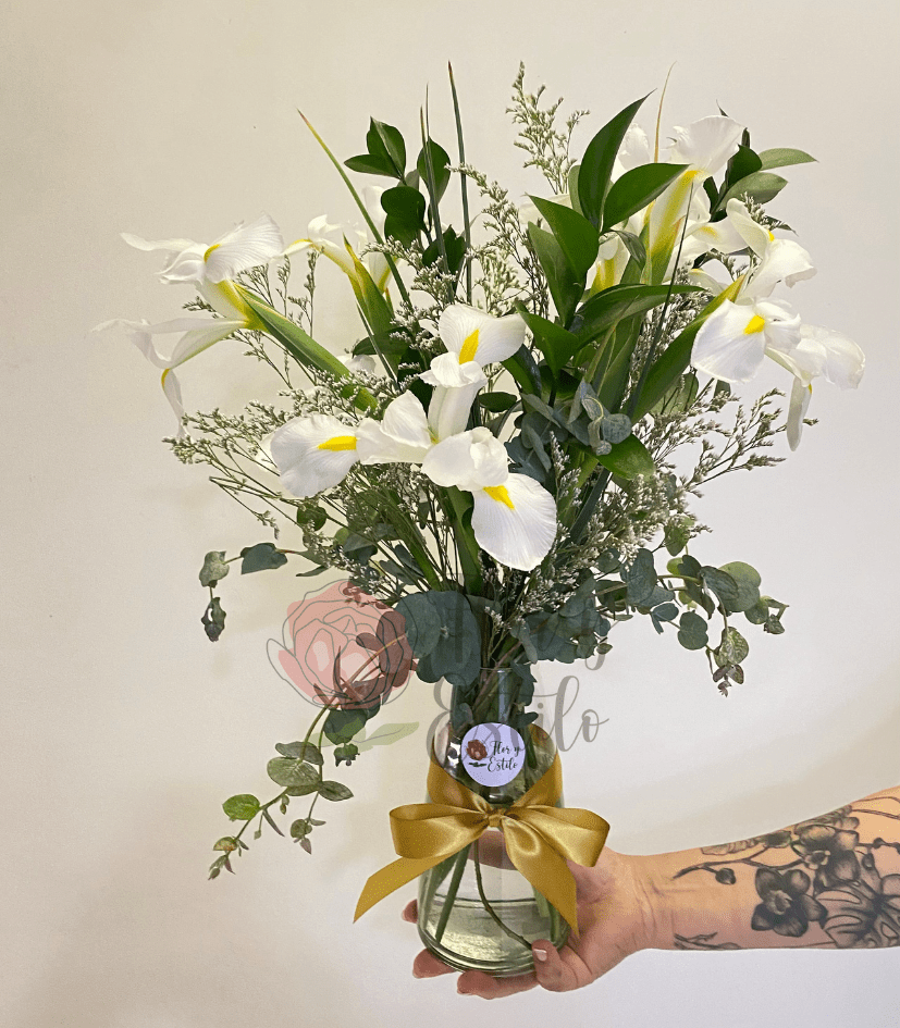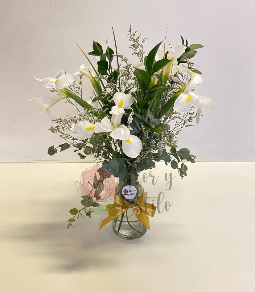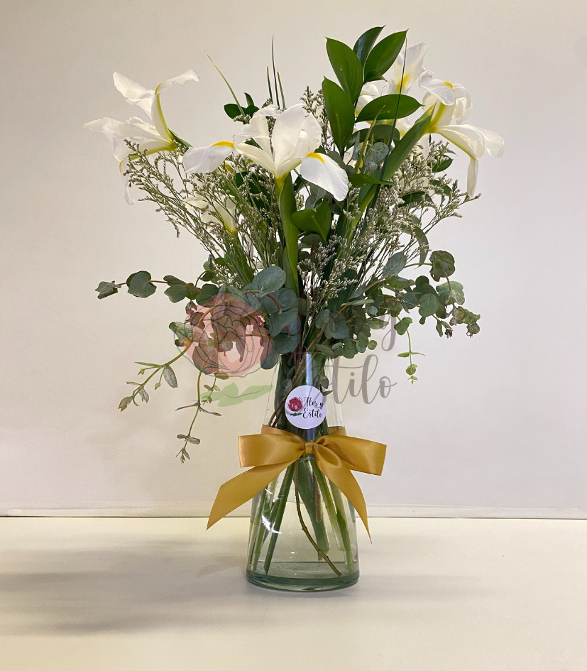 Deluxe. Florero Isabella. Rosas y hypericum en florero.