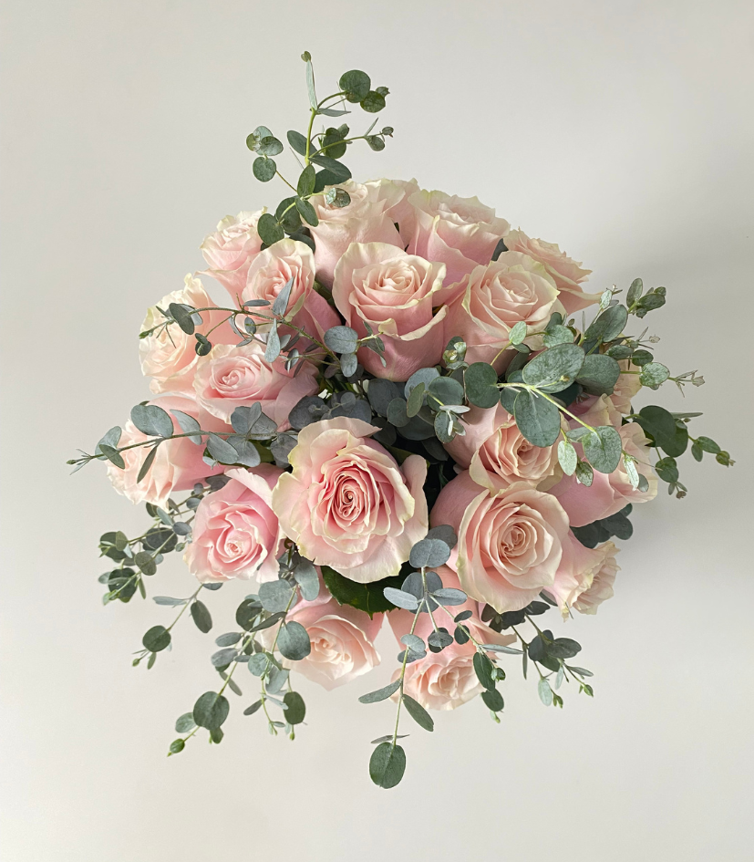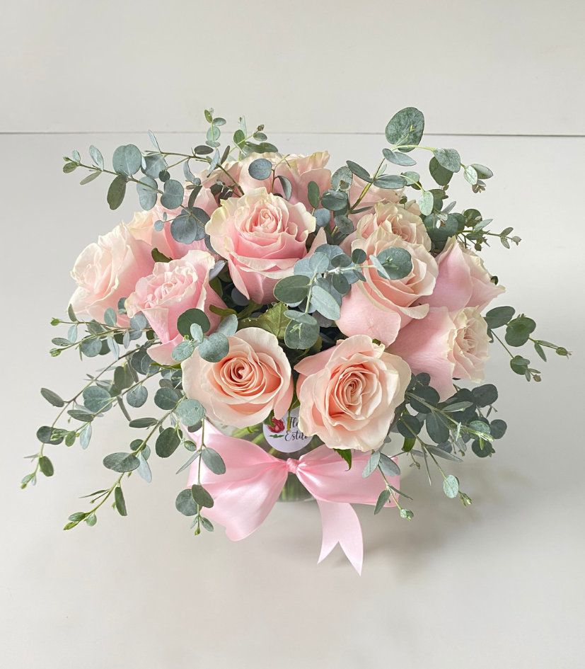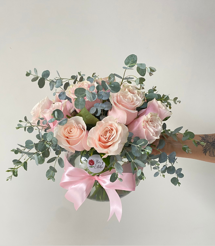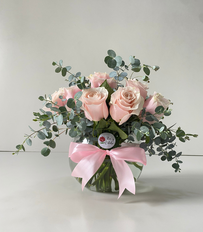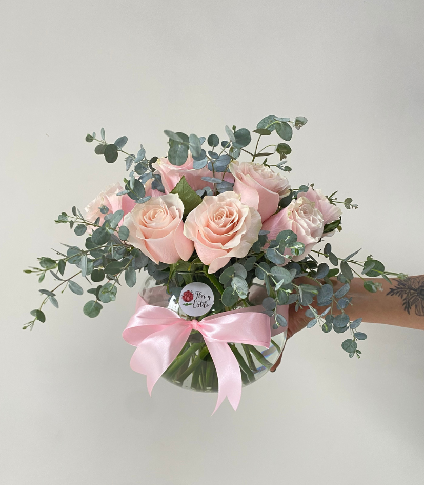 Florero Lola rosa. 20 Rosas rosadas en florero.