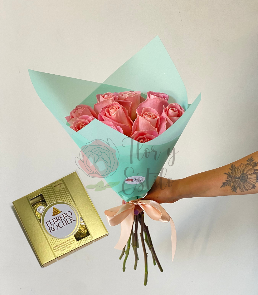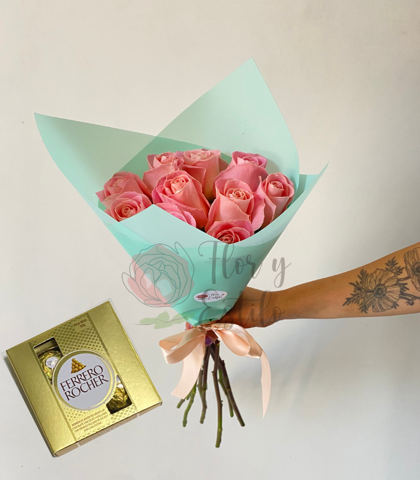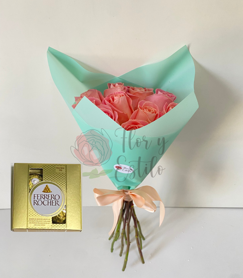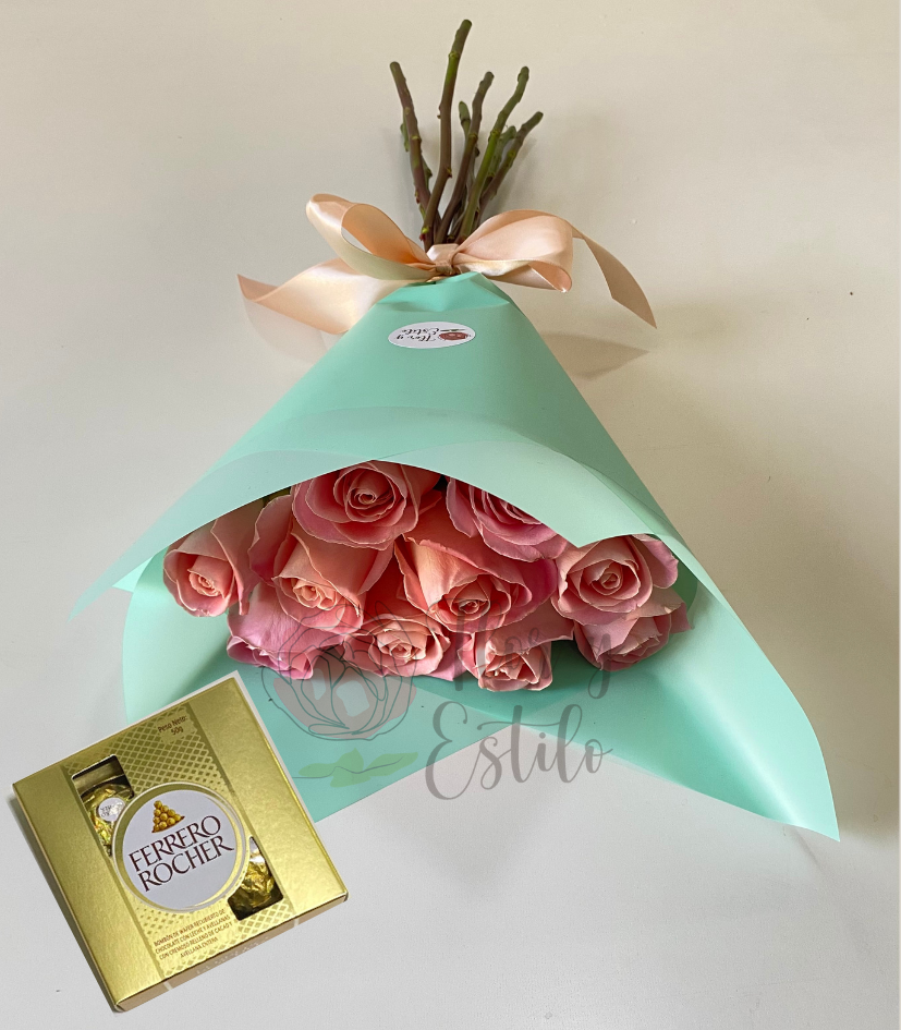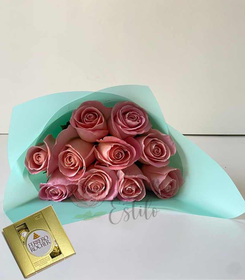 Lindo Día!. 10 rosas hermosas en ramo +Ferrero 4.