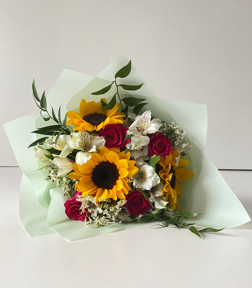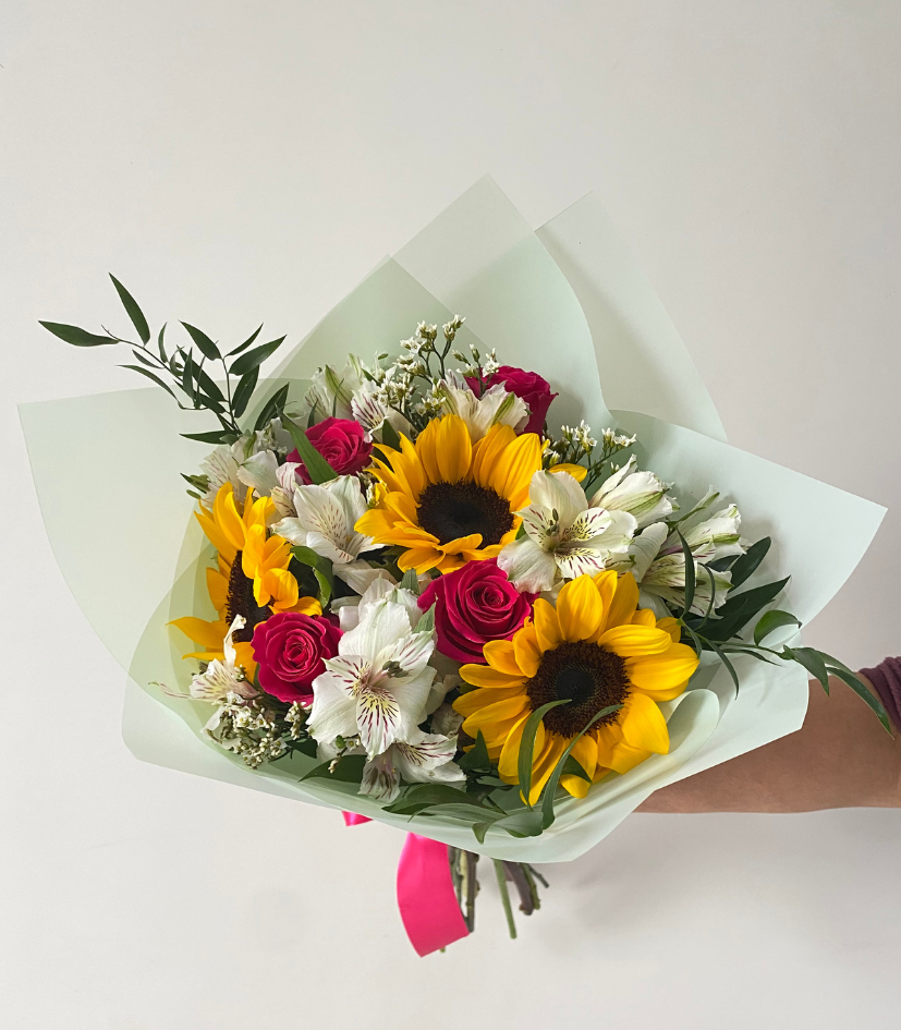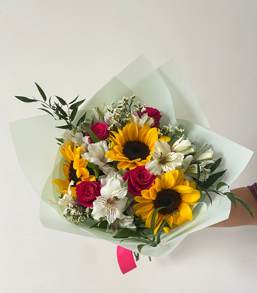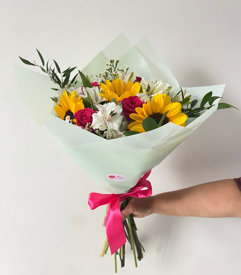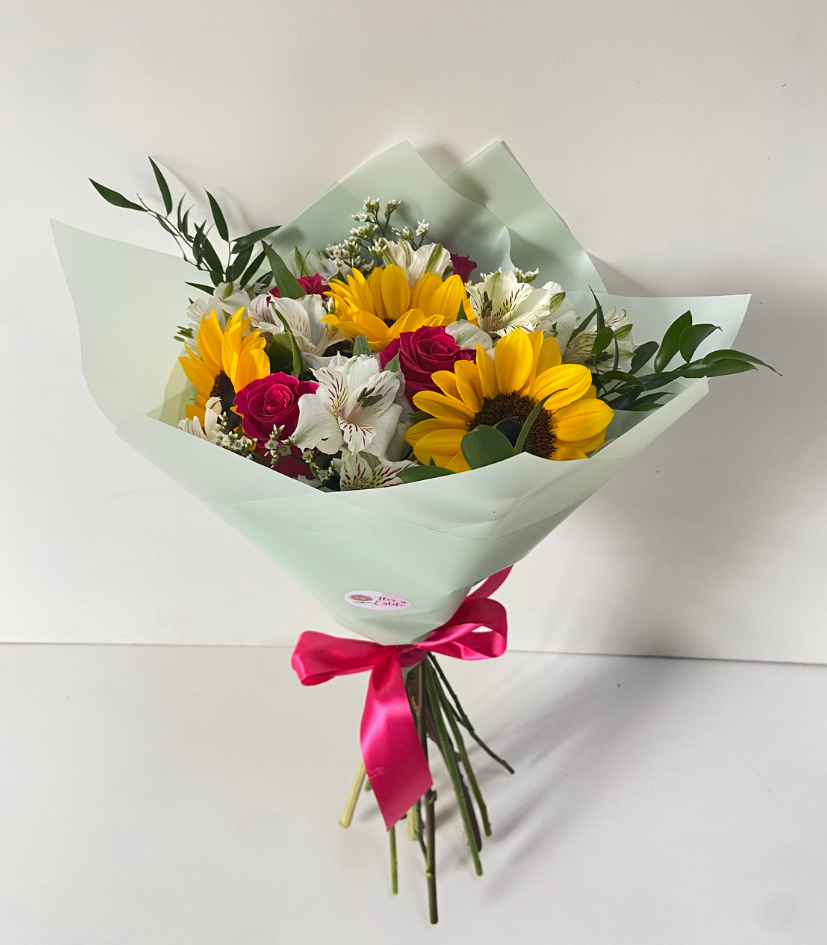 Ramo Dayana. Girasoles y rosas en ramo.