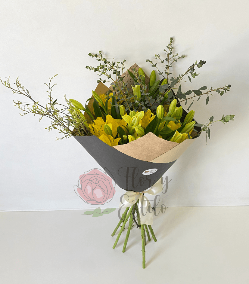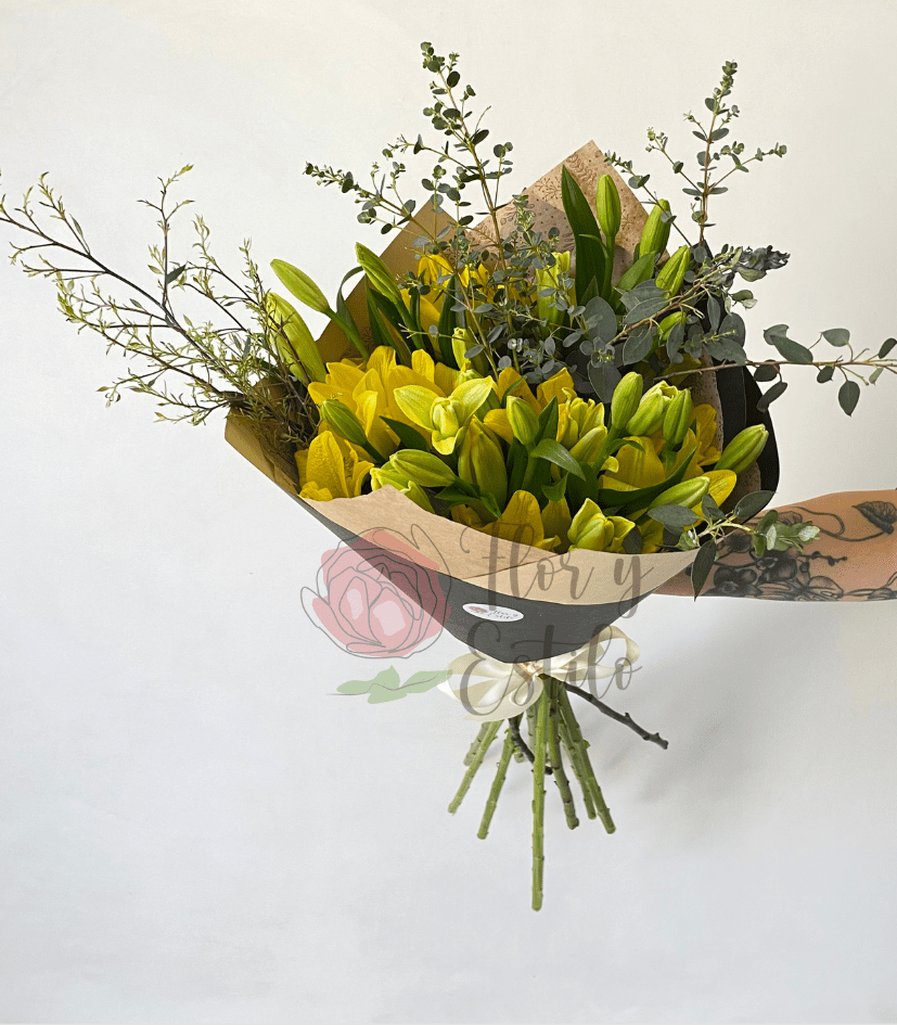 Ramo Irene. 10 Lilium Amarillos en ramo.