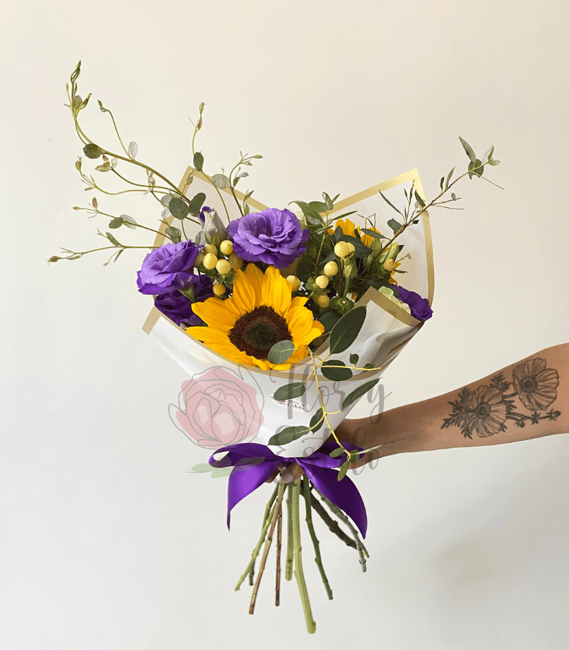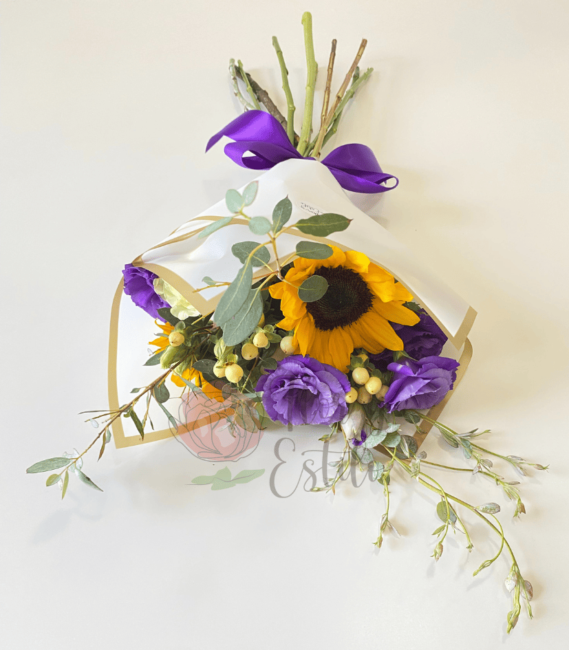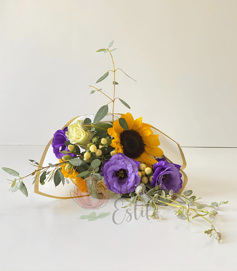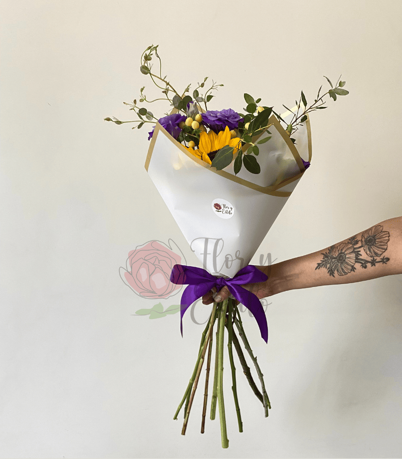 Ramo Caro en blanco. 8 Rosas blancas y eucaliptus en ramo.