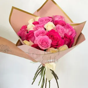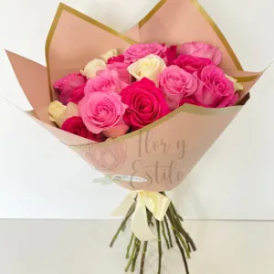 Ramo Nicole. 10 rosas, blancas y rosa suave