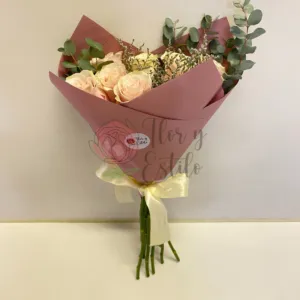 Ramo Nicole. 10 rosas, blancas y rosa suave